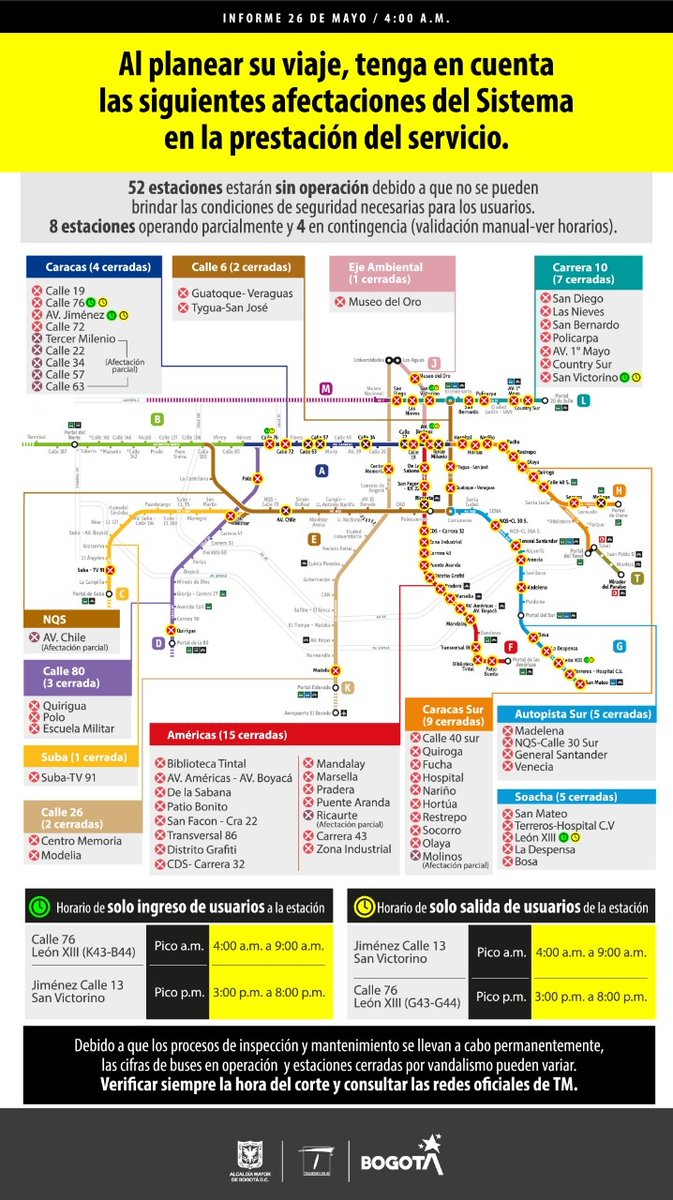 En las américas y usme se han registrado enfrentamientos entre manifestantes y la fuerza pública. En este nuevo formato podrás conocer de la mano de nuestro gerente general, felipe ramírez, todo lo que sucede en el sistema y sus diferentes componentes. Aún hay 41 estaciones fuera de servicio, y otras dos operan con contingencia. El sistema mantiene 51 estaciones cerradas debido a los daños en su infraestructura. 👇más información👇┊ ┊ ┊ ┊ 🗿┊ ┊ ┊ 👁🗨┊ ┊ 👽┊ 💀☣¡un cordial saludo queridísimo pueblo del misterio!